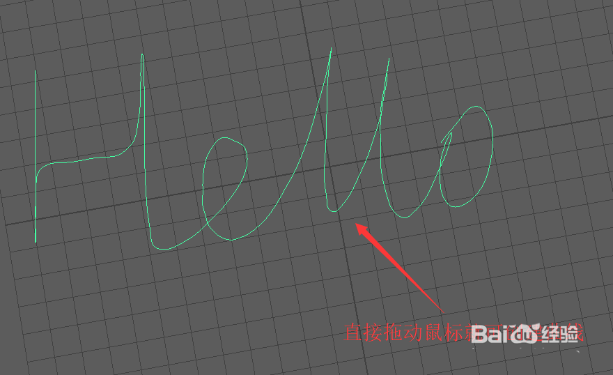 2、直接在视图窗口中拖动鼠标不松开,就可以在栅格面上创建一根曲线。按下Enter键退出铅笔曲线工具。