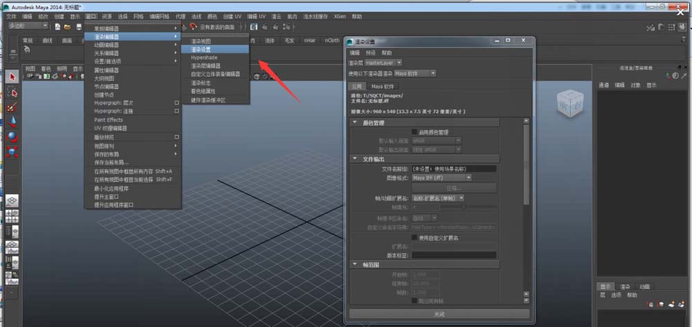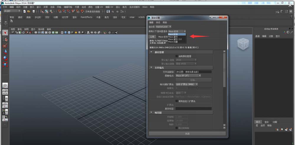 2、现在去“窗口”>“渲染编辑器”>“渲染设置。打开渲染设置窗口。选择默认的渲染器,你会看到“Maya软件”。