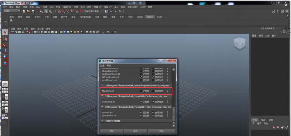 5、打开插件管理器窗口,向下滚动找到“Mayatomr.mill”。