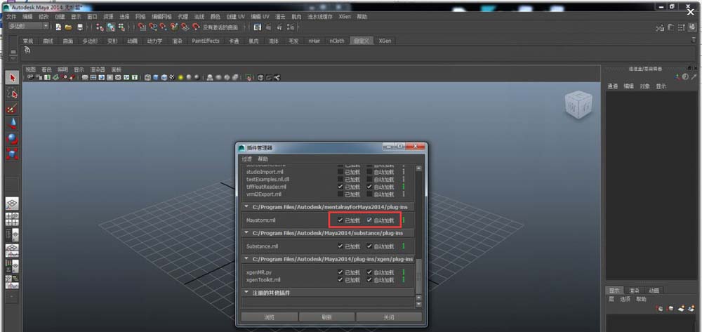 6、找到Mayatomr.mil,打开加载和自动加载选项,然后点击“刷新”按钮。