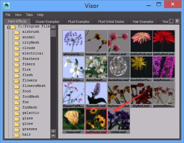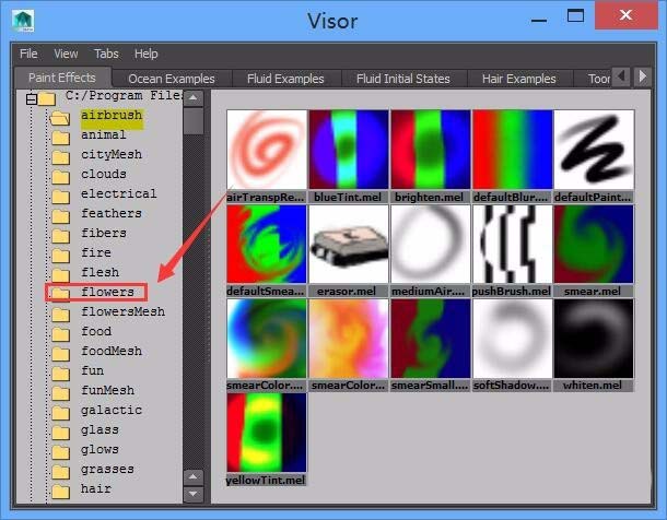 5、点击visor选项,在弹出的对话框内我们找到flowers选项,如图所示: