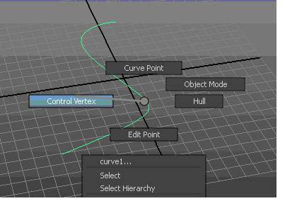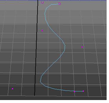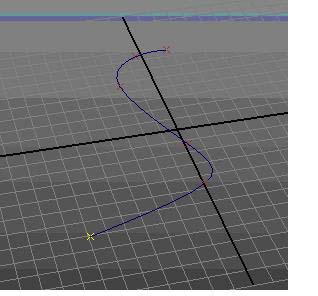 使用CV曲线工具在场景中创建一条曲线(在场景中点击鼠标左键进行自由创建),单击回车键就可以在场景中生成一条曲线,单击鼠标右键切换到曲线的CV控制点。