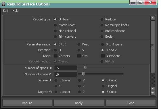 Edit NURBS—Rebuild Surface(重建曲面)U、V方向参数设置