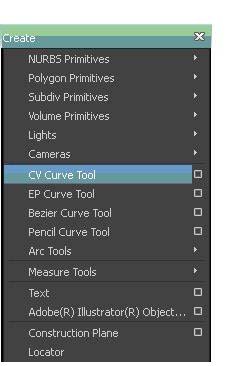 1、点击creat菜单下的CV Curve Tool(CV曲线工具)命令后面的小方盒子或者双击工具架下的CV曲线模块下的