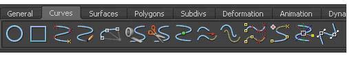 我们还可以使用工具架下面的CV曲线,选择相应的曲线工具在场景中创建相应的曲线。