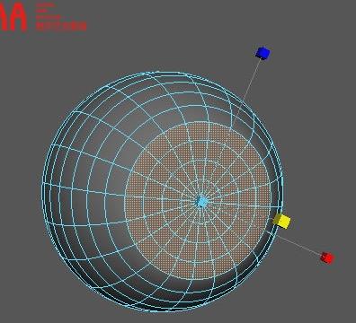 2)接下来我们需要将球体的一端,制作出闹钟的显示屏区域。制作方法主要是选着显示屏区域的面,使用缩放工具压平。如图: