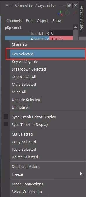 3、在移动Y属性上,右键点击key selected