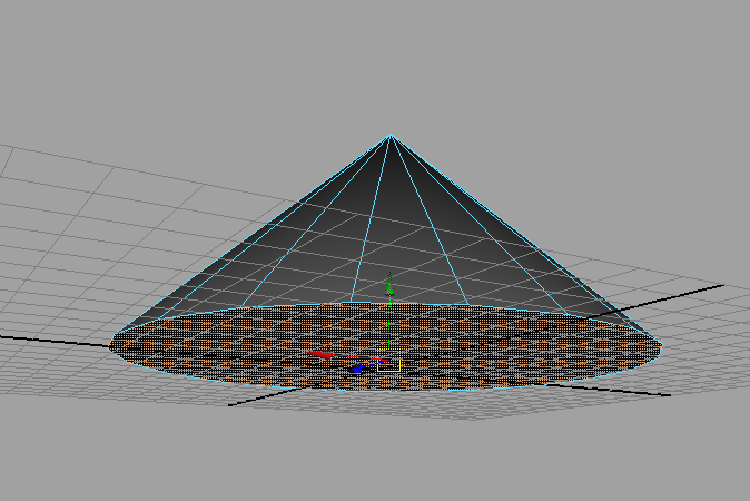 1、打开maya软件,新建一个棱锥,右击选中棱锥的地面,删除掉,伞就出来了