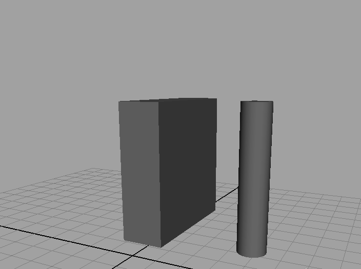 1、打开maya软件,新建一个立方体,一个圆柱体,开始演示,我这里就是以这个为例了,第一步很简单,不再多说,初级者也都会的