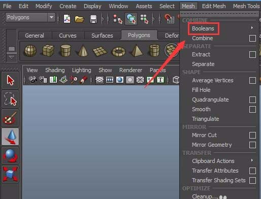 5、点击mesh菜单在其子级菜单里找到Booleans选项,如图所示: