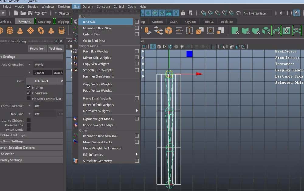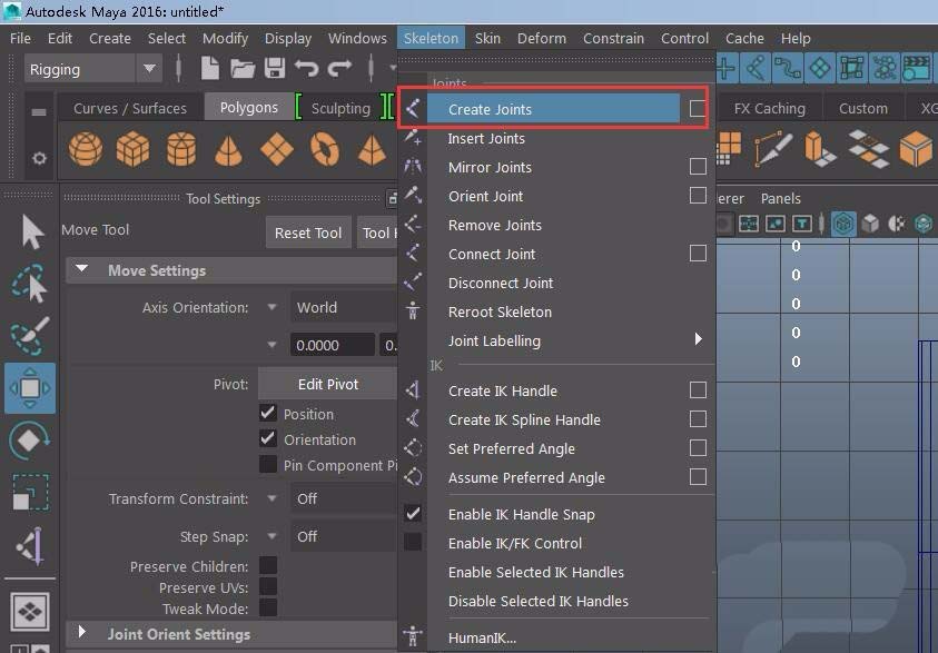 4、点击skeleton----create joints创建骨骼