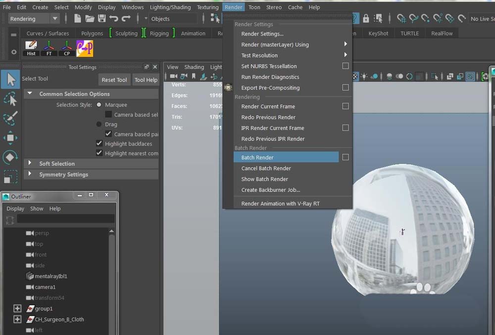 1、打开需要渲染的场景,设置好渲染设置,然后点击render-- bath render