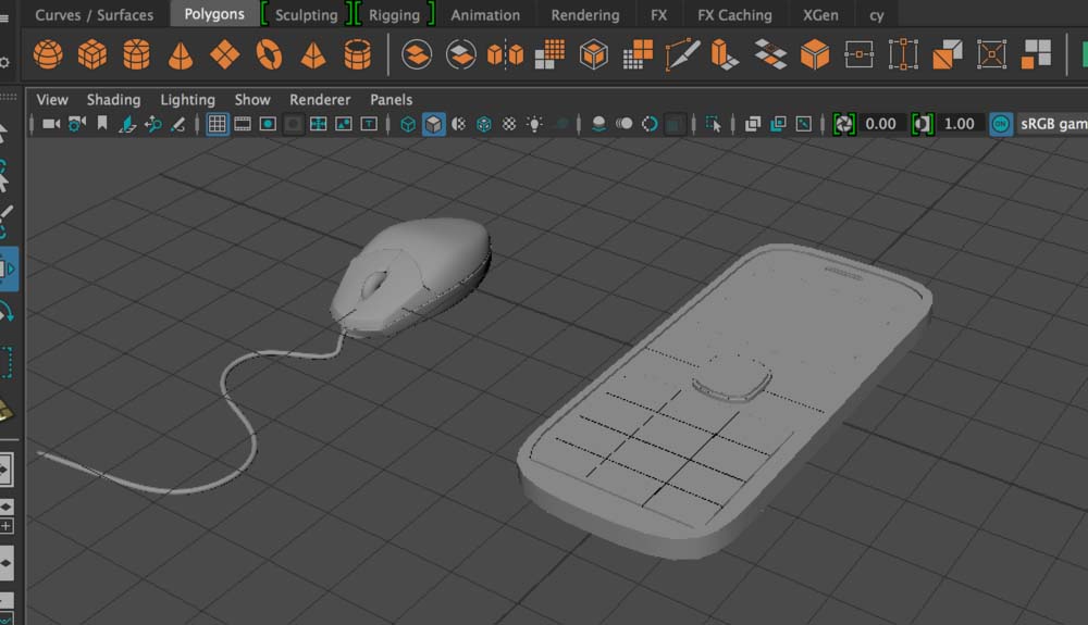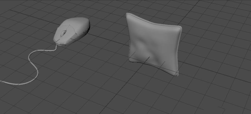 1、以下列场景为例,在鼠标模型右侧添加一个手机模型。步骤:“文件-输入”【File-Import】