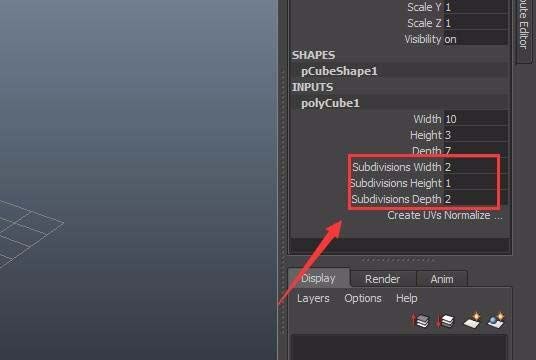 4、选择长方体在右侧的channelbox里设置参数如图所示: