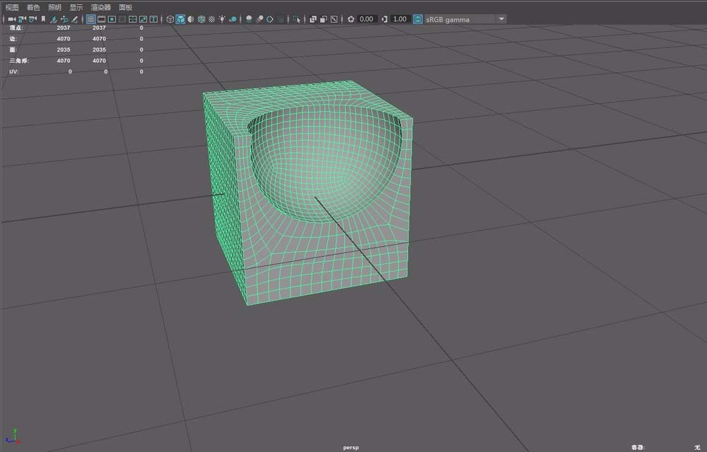 4、使用Maya布尔功能差集得到一个网格混乱的物体