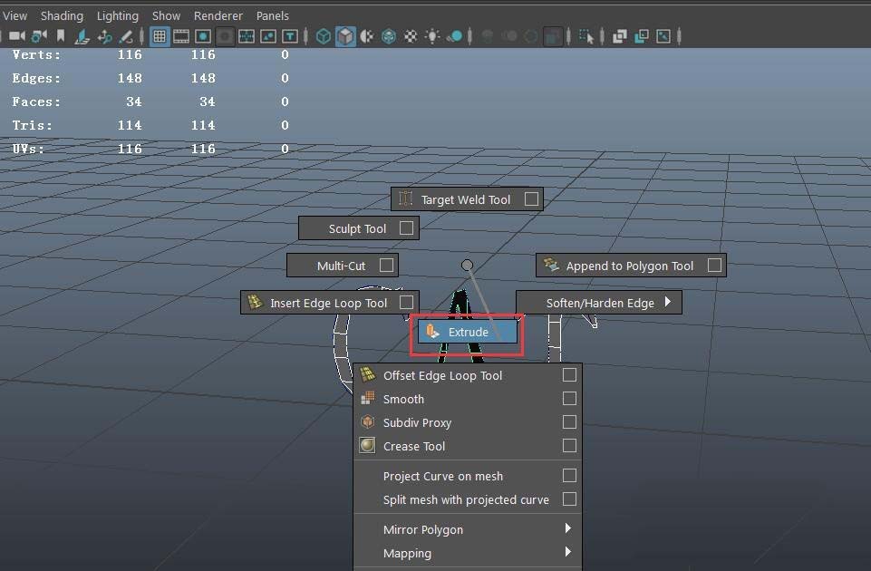 8、给模型进行挤出,即可挤出厚度(按shift键+右键---extrude)