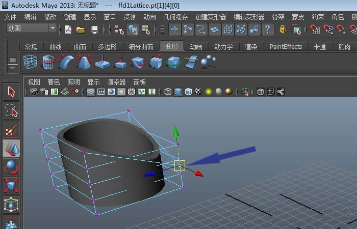 7、最后,通过移动晶格上的顶点,使圆环体模型发生变形,如下图所示。通过这样的操作,就创建好模型上的晶格了,大家也来做做吧。