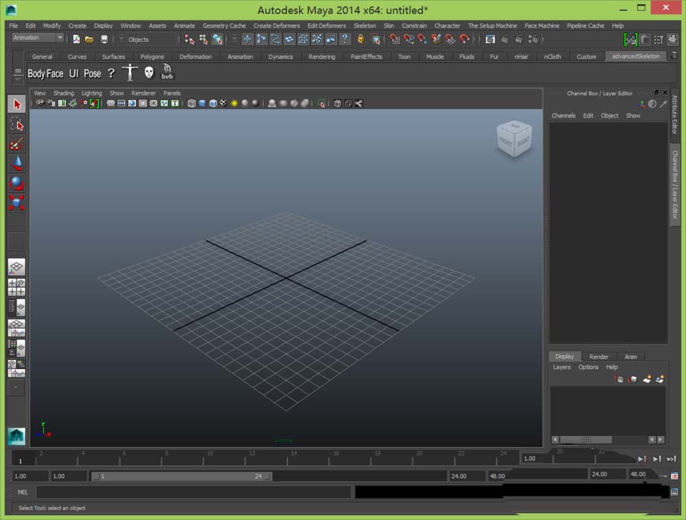 1、打开maya这款软件,进入maya的操作界面,如图所示: