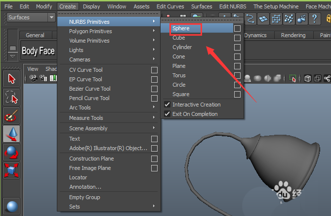 22、在nubrs的下拉菜单里找到sphere选项,如图所示: