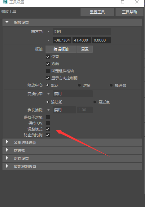 2、双击工具架上的移动按钮,或者点击窗口——》常规编辑器——》工具设置,就会弹出“工具设置”窗口了,然后如下图 找到移动设置——》调整模式,把前面的对勾点掉