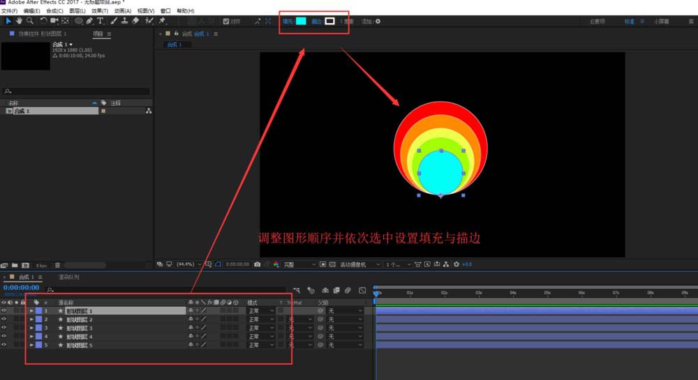ae中想要绘制简单的图形,比如一个多种颜色叠加的圆中圆的图形出来,该怎么绘制呢?下面我们就来看看详细的教程。