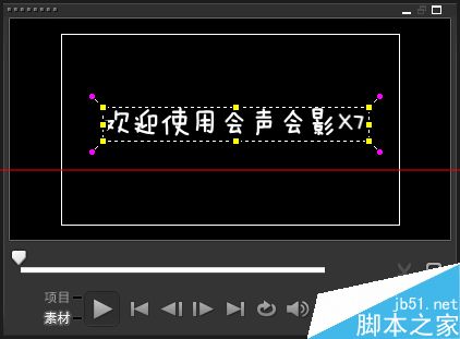 4、在光标中输入“欢迎使用会声会影X7”,点击,调整大小。