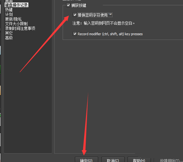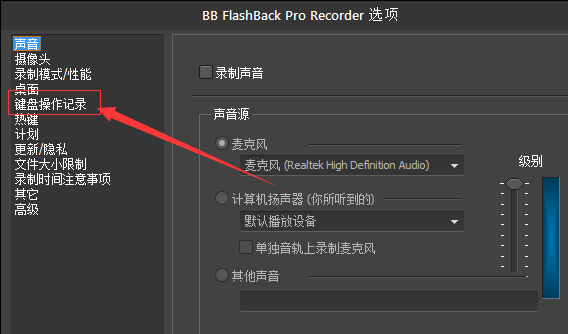 4、弹出了的选项窗口中,选中左侧中的 键盘操作记录 的选项。