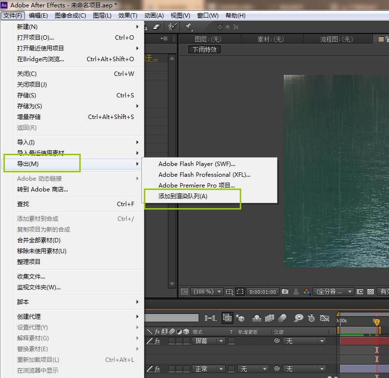 1、CTRL+I导入选好的素材,基于图片新建一个合成并命名下雨特效。