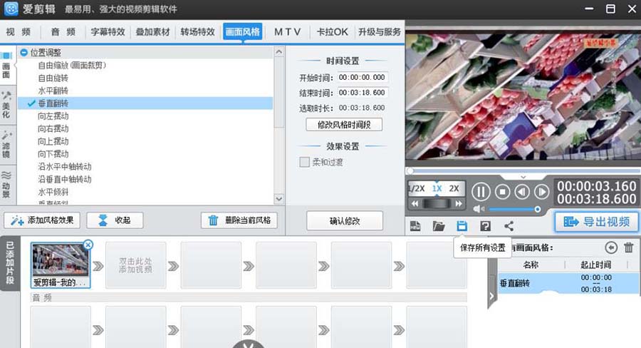2、点击菜单栏中的画面风格,选择其下的垂直翻转