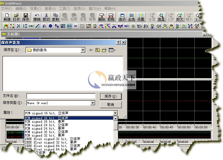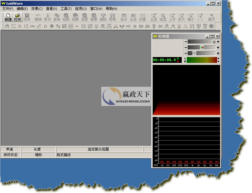 要打开文件进行保存,首先当然是要打开一个文件了。先前我们已经看过了GoldWave 的启动界面,这里就不再重复了。