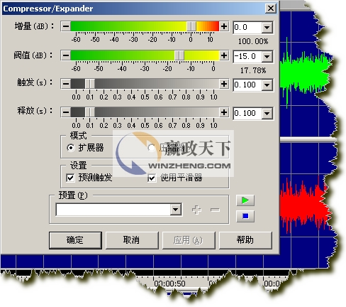 阀值:就是我们需要使用“压缩器、扩展器”来压缩和扩展的临界点,超出这个值的部分就被压缩。