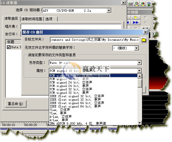 选择CD后,点击保存,直接可以另存为您需要的音频文件