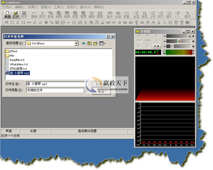 单击“打开”按钮,或者“文件”——“打开”,选择一个声音文件