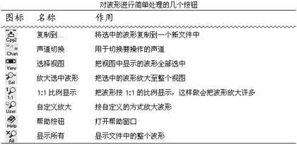 工具栏中第二行的按钮是对波形进行较复杂的处理的,我们将在第五部分介绍,这里,我们先介绍工具栏中第一行里还未提过的几个按钮(图10)。