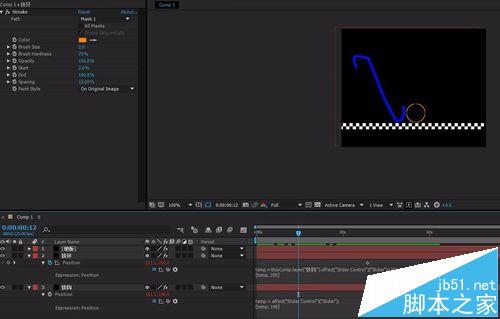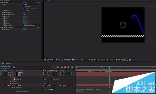 1、新建一个352*288的合成。滚铁环,需要有铁钩和铁环。新建固态层,用钢笔画一个铁钩,描边路径。
