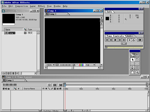 用它实现你的想象。使"没有想不到,只有作不到成为现实"我们将用五个篇幅来向你介绍这一工具,快速掌握After Effects 。正式开始使用After Effects 之前我们先来熟悉一下After Effects 的操作界面。After Effects的基本创作流程是很直观的。界面和工具也非常直观。