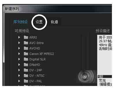 3、查看你要导入的视频的参数,并新建一个序列. 点击 序列预设 右边的 设置 根据你要导入的视频的参数更改序列的设置, 具体设置方式往下看步骤2
