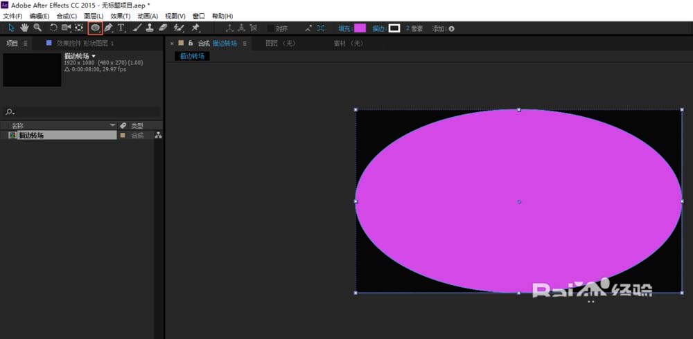 1、打开AE新建项目并新建合成,设置合成的名称为"描边转场"、合成的大小为1980*1080、合成的持续时间为8秒;