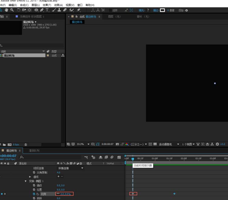 4、找到描边变换下的【比例】属性,设置关键帧;