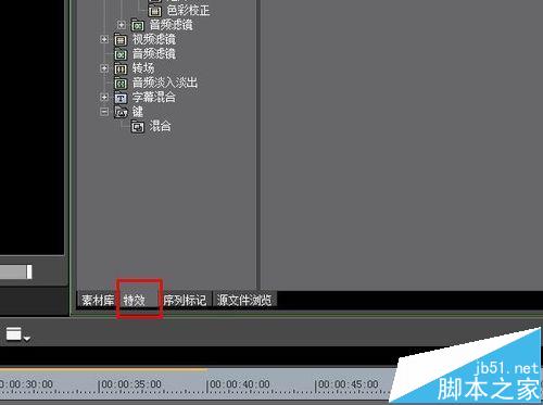 6、单击播放按钮,就可以在播放窗口中预览默认转场特效。