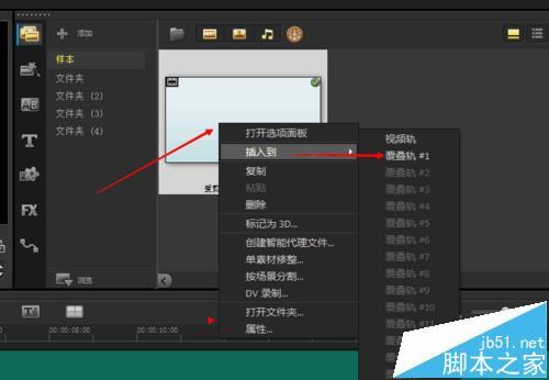 3、把视频插入到(覆叠轨#1)进行编辑