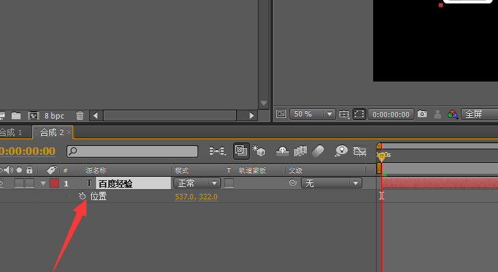 2、然后我们选择文字,可以按小三角,也可以按快捷键P,这样我们就可以看到是的位置的属性