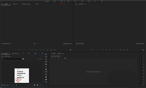 3、选择上方面板选项的编辑(默认是编辑界面,不用选),右击左下角的方框中心,点“导入”插入要剪辑的视频(或者把视频拖进去)。