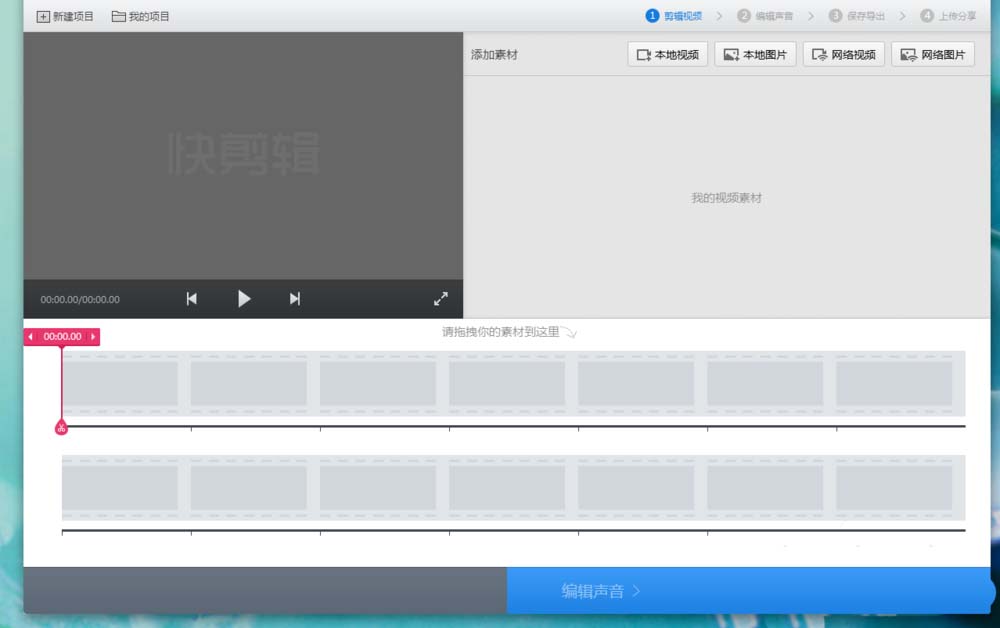 1、双击桌面上快剪辑软件的桌面快捷方式,打开编辑主页