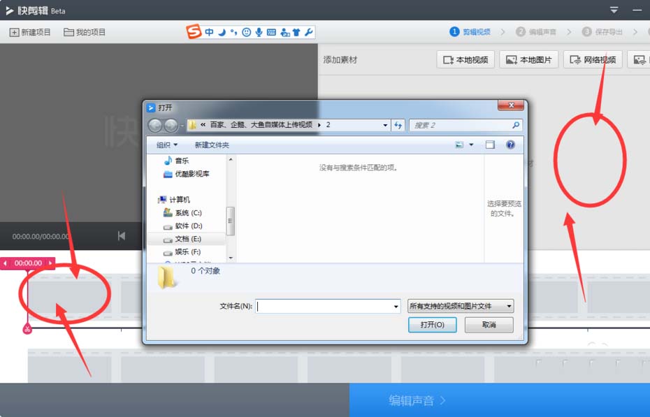 2、这两个位置都可以双击,打开视频添加框。