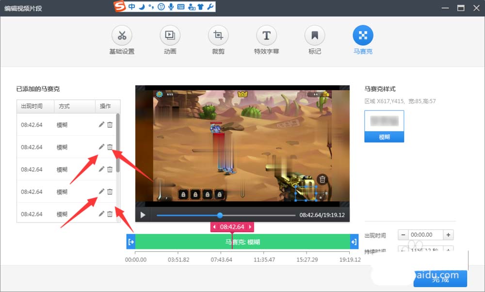 12、你也可以在这里继续编辑马赛克或者删除马赛克。