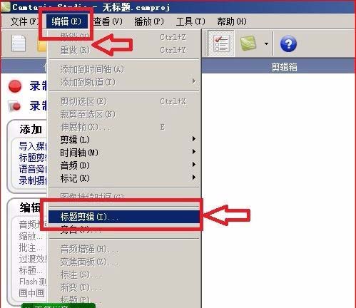 2、在“任务列表”中选择“标题剪辑”。(在“编辑”-“标题剪辑”中也可以打开此菜单功能)