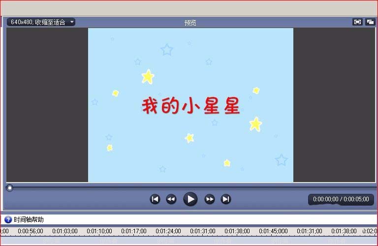 5、把“我的剪辑1”拖放到视频轨道即可以看到预览,在视频轨道上是播放显示5秒。