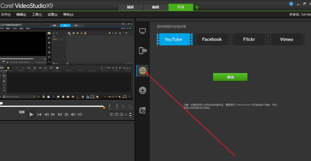 6、网络是直接将视频发到网络上,但是默认的在线平台是:YouTube/Facebook/Flickr/Vimeo,因为国内不支持这些平台所以这个功能对于国内的小伙伴然并卵。