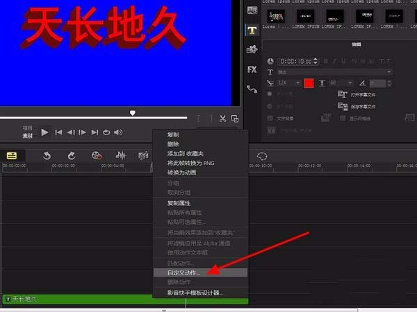 6、下面就利用自定义动作,使它动起来。先将标题轨点击右键,点击自定义动作,弹出了自定义界面。